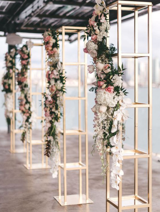 The Eden Floral Columns can be used on their own, accented with flowers or draping or fully covered in flowers.